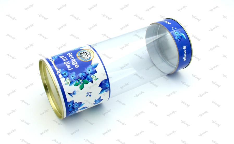 قوطی مقوایی ویترین دار دمنوش بسته بندی استوانه ای