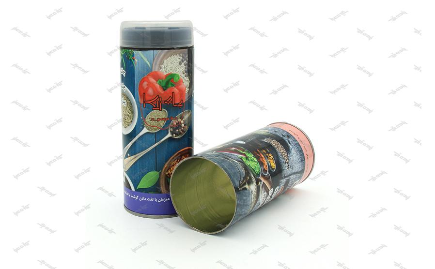 قوطی مقوایی استوانهای برای ادویه و نمک | بستهبندی استوانهای متالایز