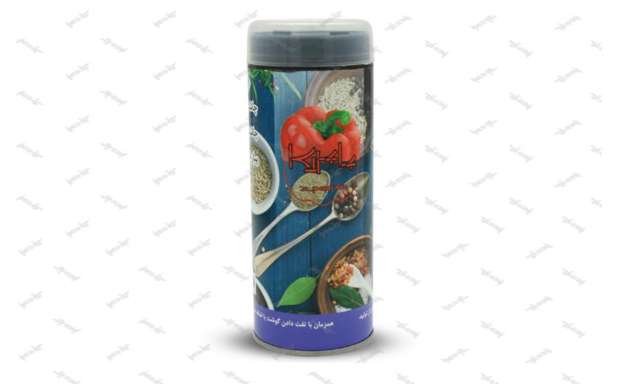 داخل این قوطی از لایه متالایز (Metalized Layer) پوشیده شده تا از نفوذ رطوبت جلوگیری کند و کیفیت ادویه حفظ شود.